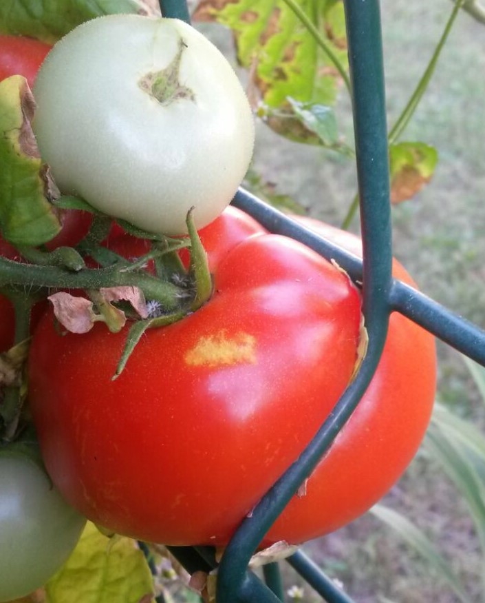 This tomato grew on both sides of the fence as many “Christians” try to play the part on Sunday, but live like the world during the week, blaming God for all that goes wrong.
